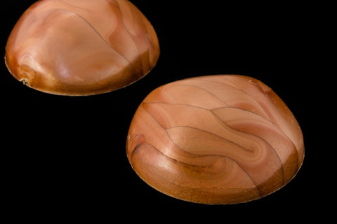 28mm marbled matte brown pearl dome with squared off surface and flat back.