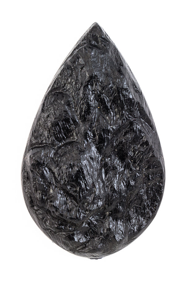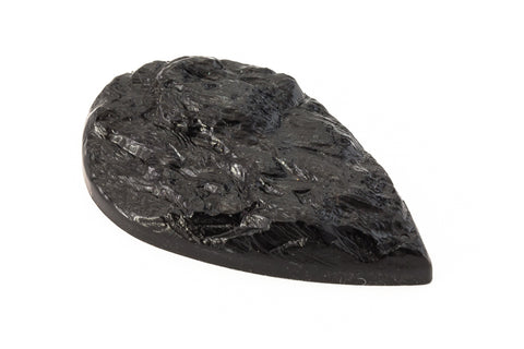 42mm x 25mm black domed teardrop with bark texture.