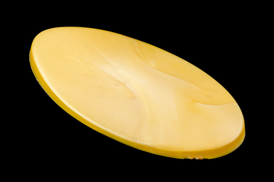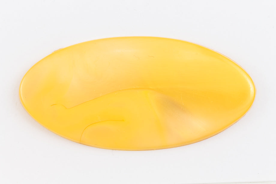 65mm x 31mm flat oval in matte marbled mango pearl.
