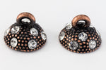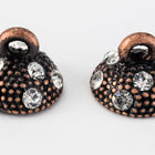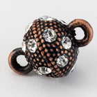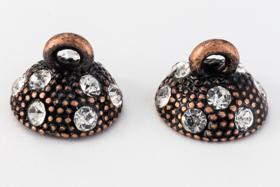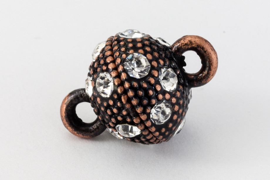 Nickel-free antique copper plating over brass with beaded texture and scattered crystals.