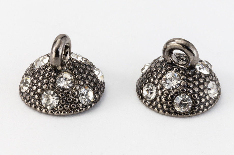Nickel-free gunmetal plating over brass with beaded texture and scattered crystals.