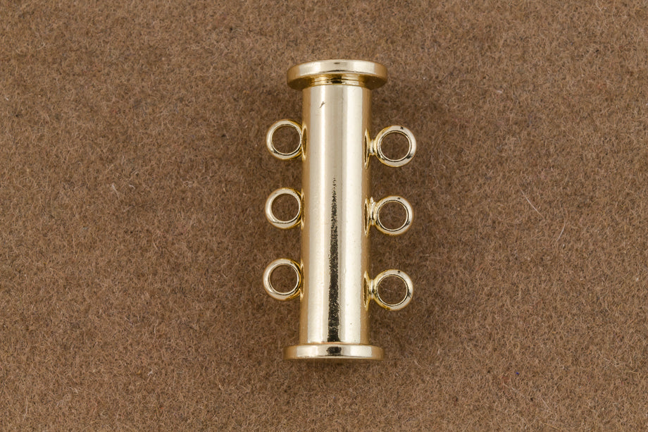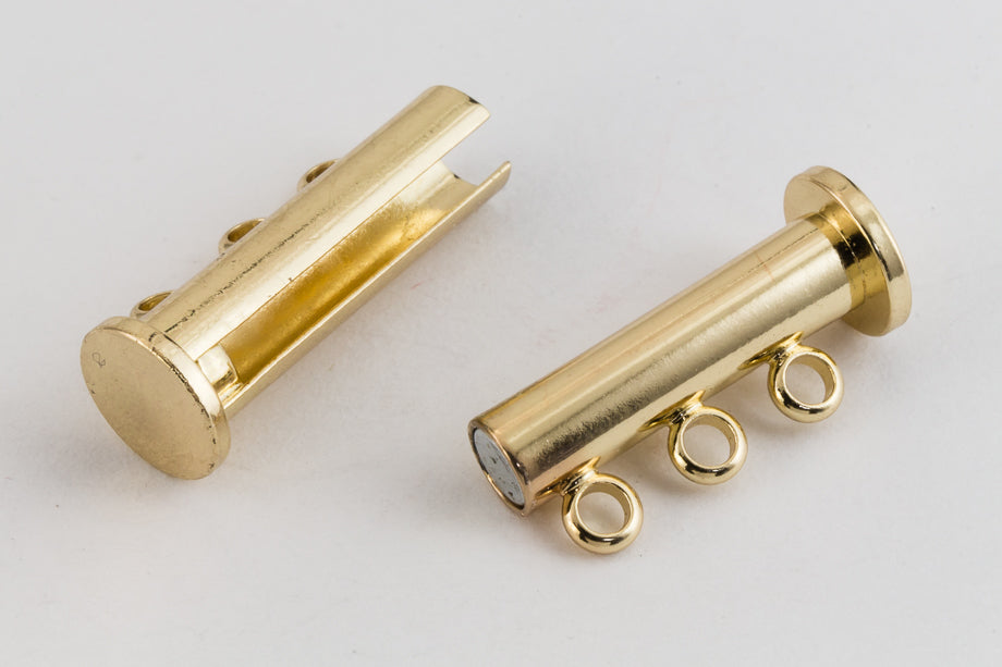 20mm x 10mm gold tone magnetic slide clasp with 3 loops on each side.