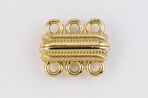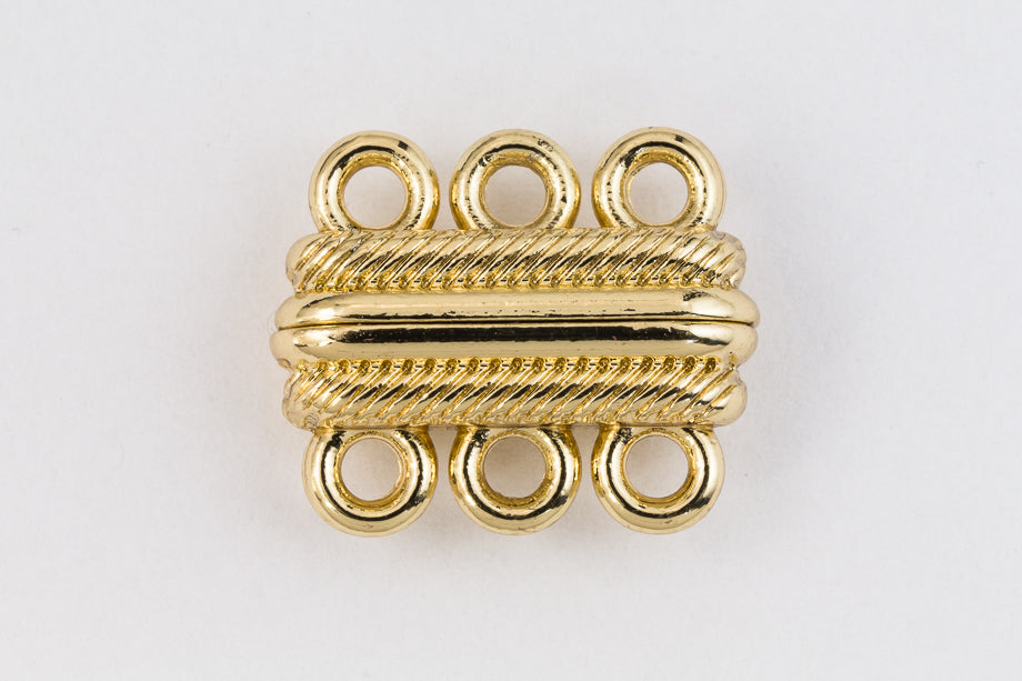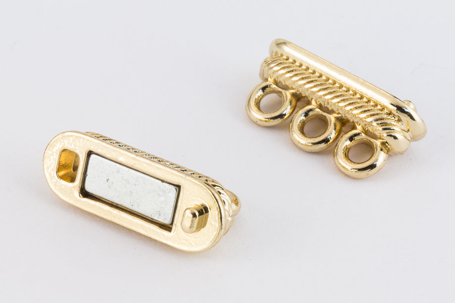 20mm x 17mm gold tone magnetic clasp with 3 loops on each side.