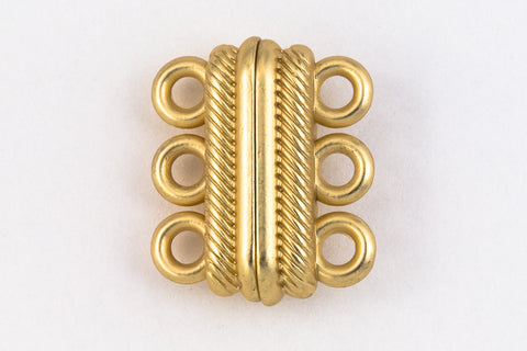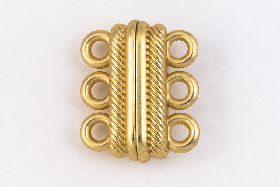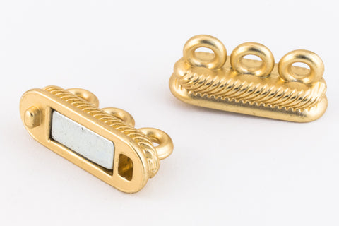 20mm x 17mm matte gold magnetic clasp with 3 loops on each side.
