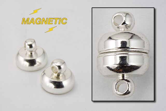 6mm x 11mm silver tone round magnetic clasp with loop on each side.