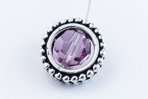 14.5mm antique silver round bead frame with beaded border. Inner diameter measures 8.6mm with 1mm hole.