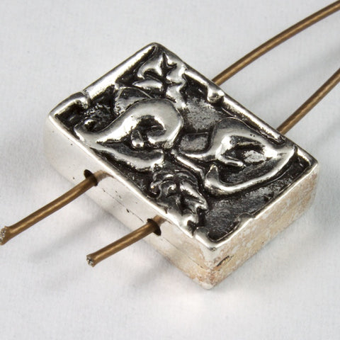 14.3mm x 9.8mm antique silver two hole spacer bead with calla lily inlay.