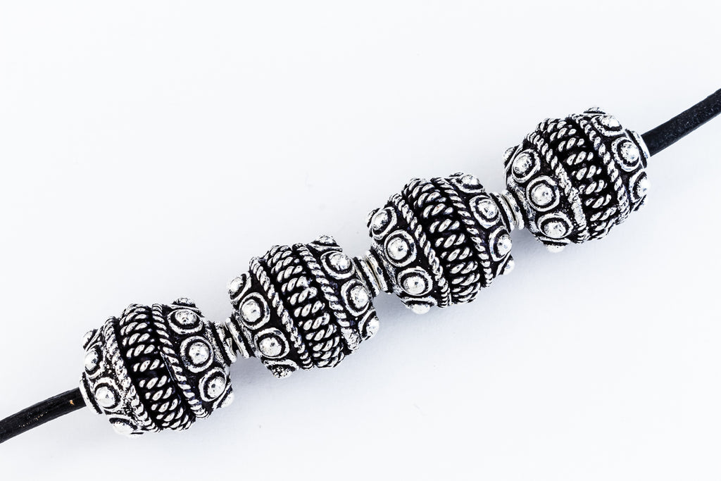 15mm x 13mm antique silver oval bead with traditional dot and rope decoration and 2mm hole.