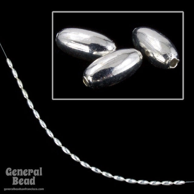 2mm x 4mm smooth silver oval bead with tiny hole.