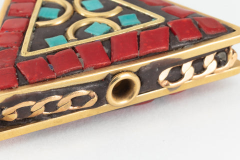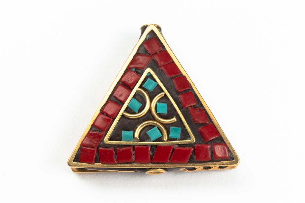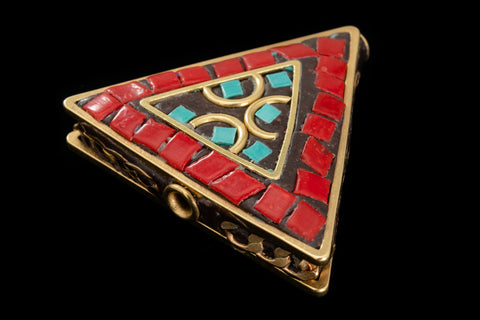 30mm Red and Turquoise Tibetan Triangle Coin Bead