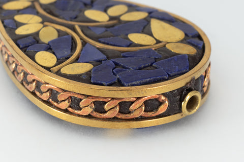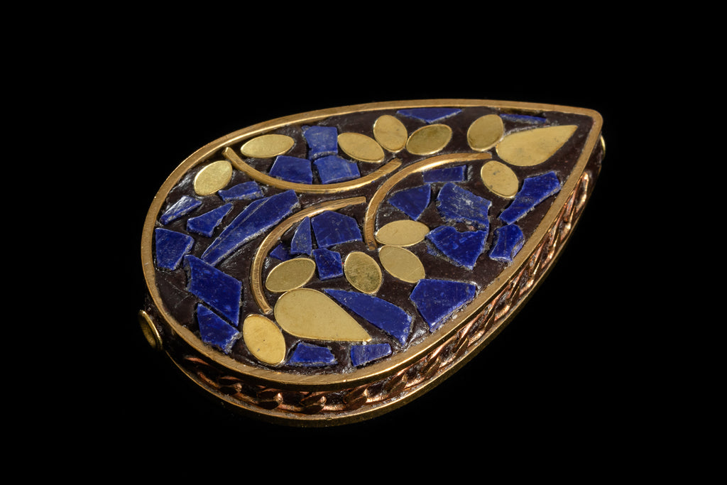30mm x 45mm Lapis and Brass Leaf Teardrop Tibetan Bead