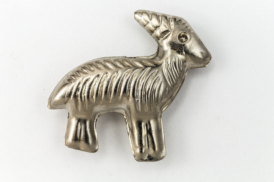 30mm x 35mm brass two sided folk goat with silver tone plating and approximately 1mm vertical hole.