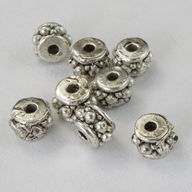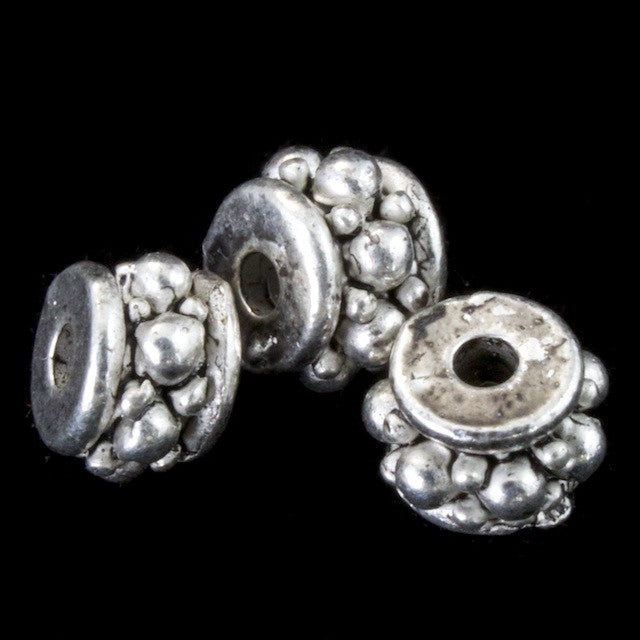 3mm x 5mm pewter spacer bead with dotted design and 1mm hole.