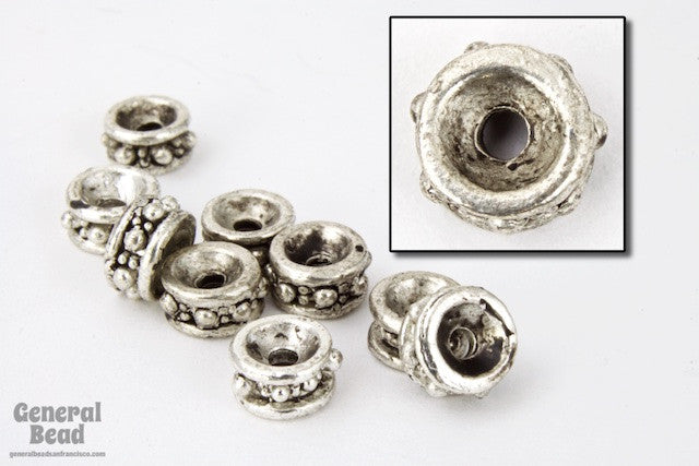2mm x 6mm antique silver beaded spacer with 1mm hole.