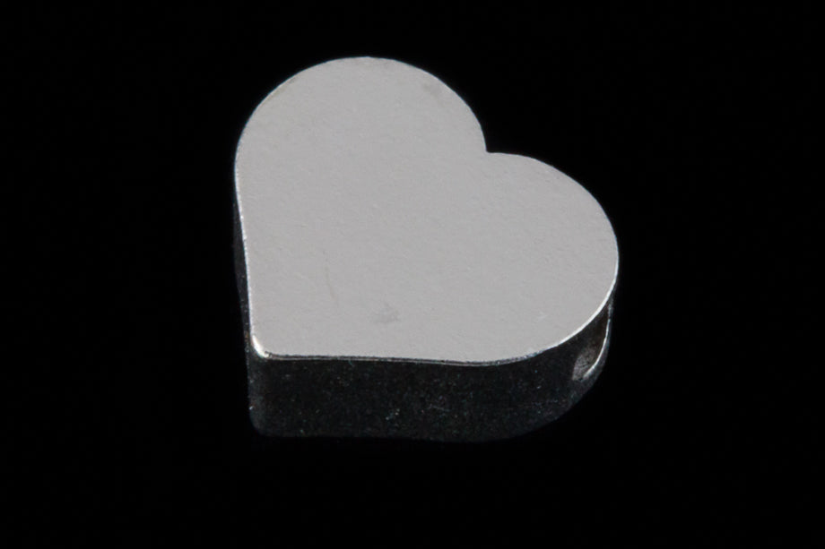 7mm x 6mm classic heart with 1.3mm side drilled hole. 2.5mm thick.