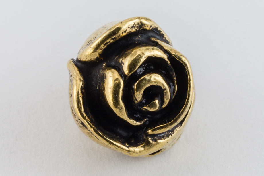 6.75mm x 8mm antique gold rose blossom bead with 2mm hole.