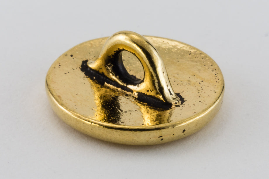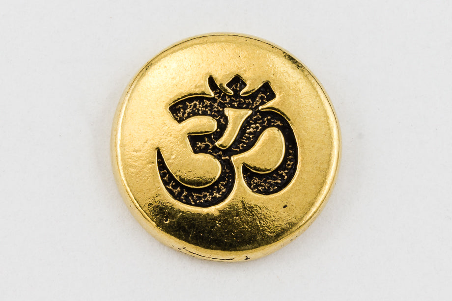 12mm antique gold round pewter button with engraved "Om" symbol and 2.4mm shank on back.