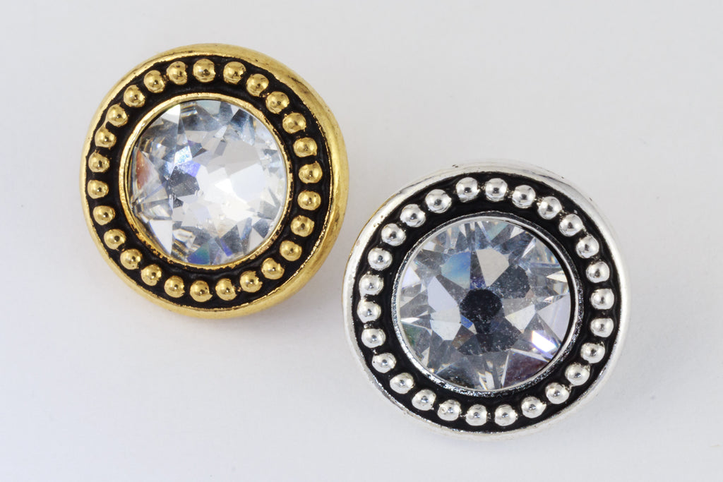 Button made by TierraCast in northern California, USA using precious metal plating.