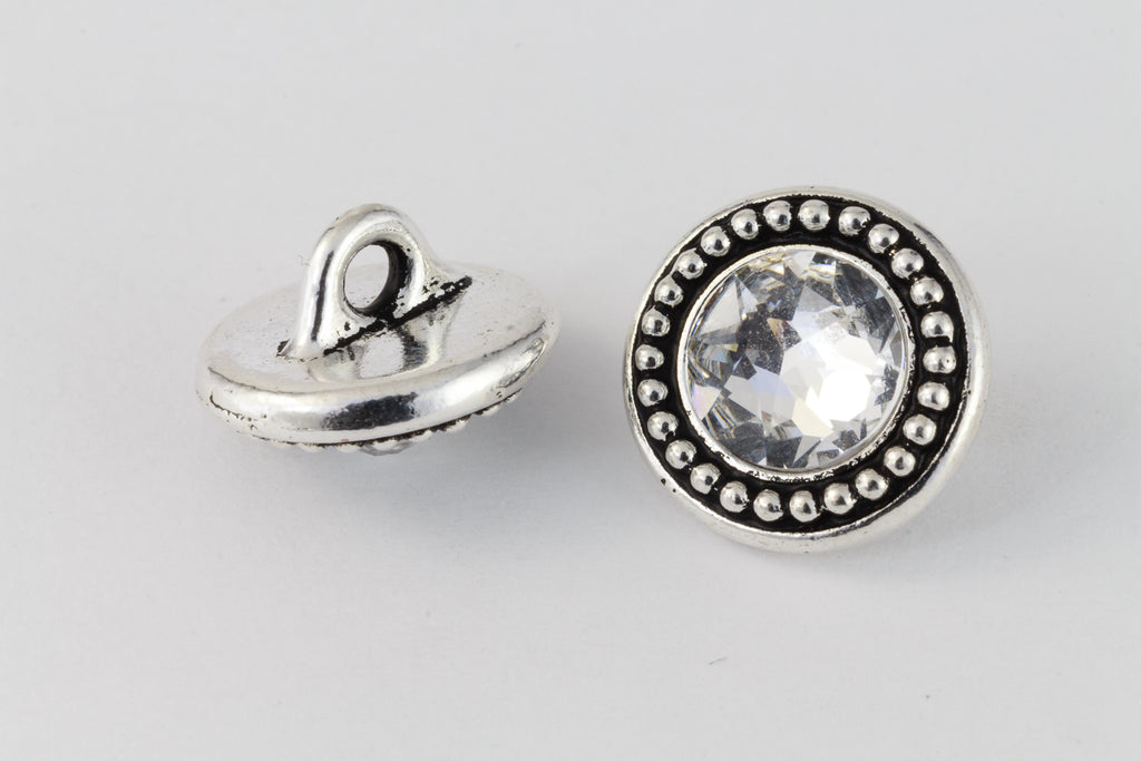 12.3mm round pewter button with delicate beaded border and 2.4mm shank on back.