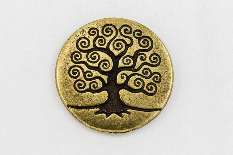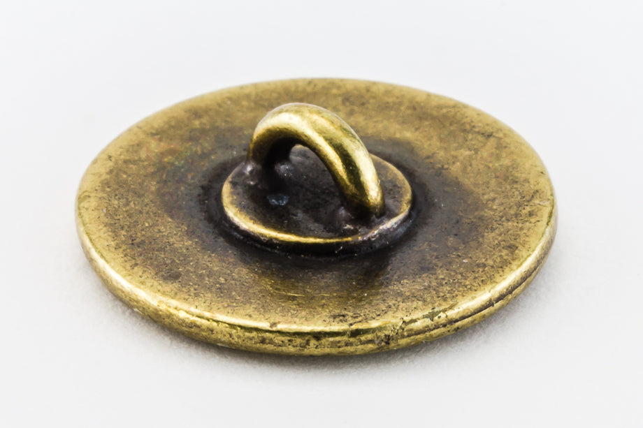 16mm antique brass round pewter button with engraved "Tree of Life" symbol and 2.2mm shank on back.