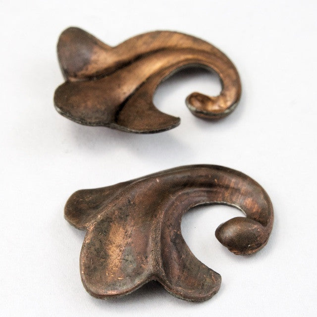 20mm x 24mm raw brass Art Deco style curved leaves in right and left.