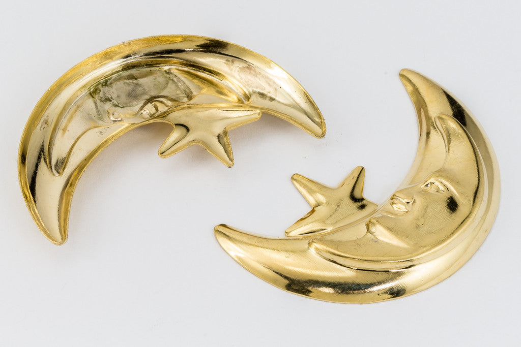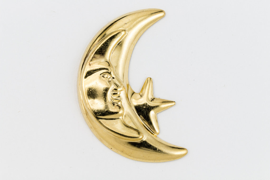 20mm x 40mm gold tone crescent moon with star peeking out.