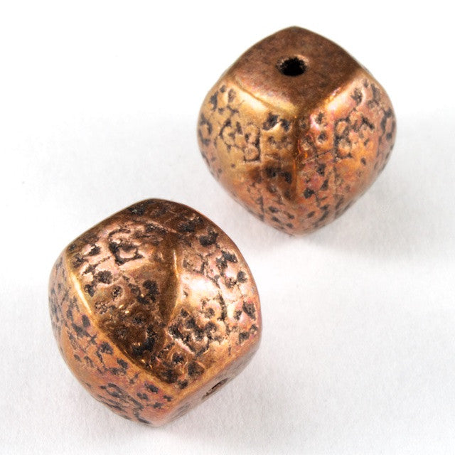 18mm antique copper four sided barrel with textured surface and 1.5mm hole.