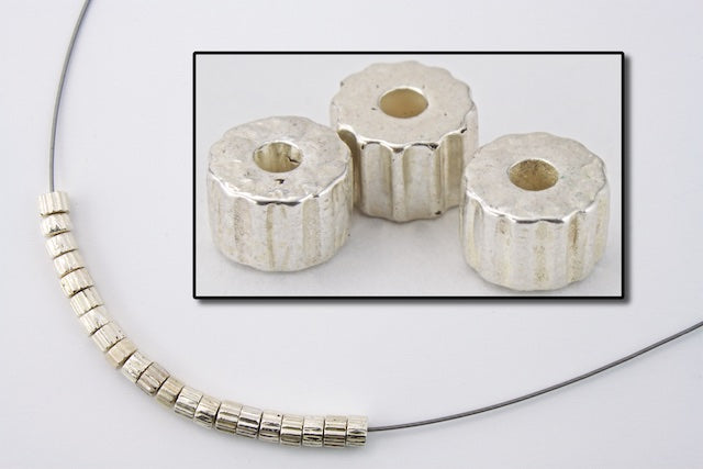 4mm x 2.5mm silver ridged drum bead.
