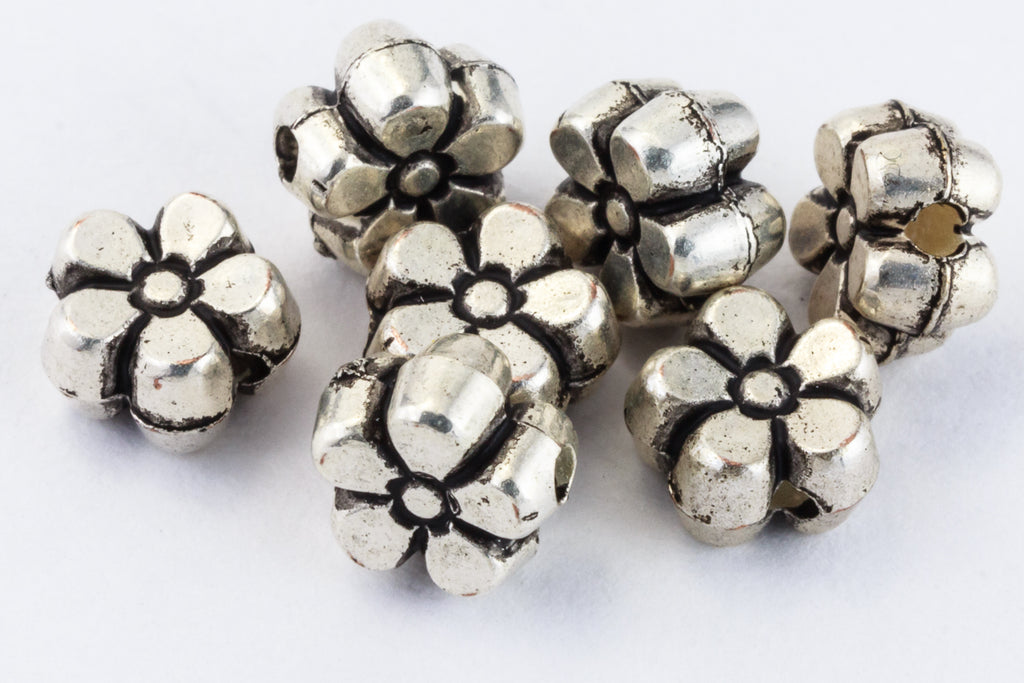 6mm Antique Silver Flower Bead (2 Pcs) #MPA151