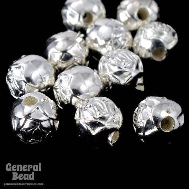 6mm Bright Silver Rose Bead (12 Pcs) #MPB015