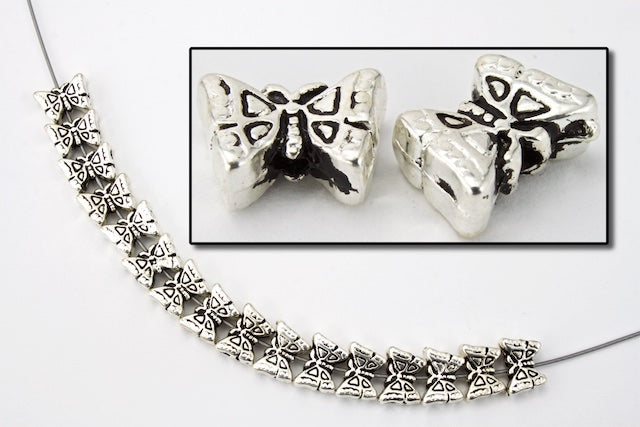 6mm x 8mm antique silver butterfly bead with vertical hole.
