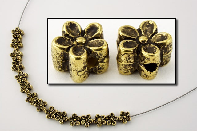 7mm Antique Gold Flower Bead (2 Pcs) #MPB185