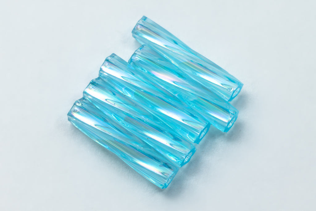 Size 2 twisted bugle in transparent aqua aurora borealis.