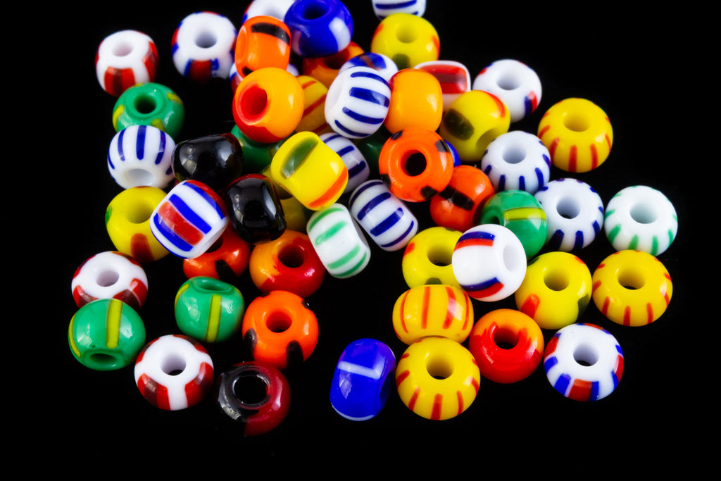 Size 6 "Circus Stripes" mix of colorful striped seed beads.