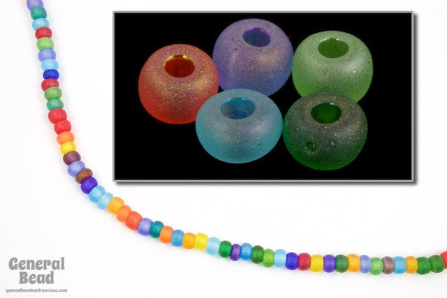 Size 6 matte transparent multi-color seed beads dusted with gold.