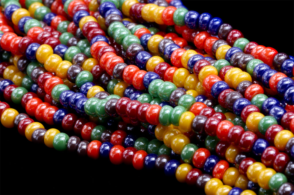 Size 8 opaque luster multi-color seed bead mix.