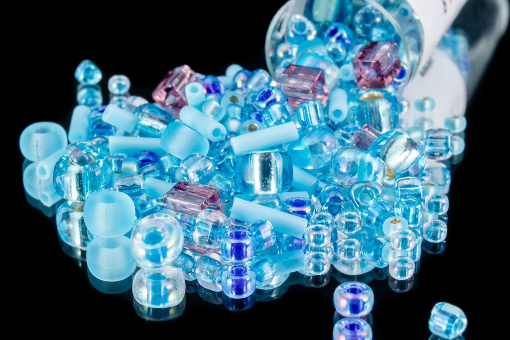 May include seed beads, bugles, cubes, hex beads and magatama drops.