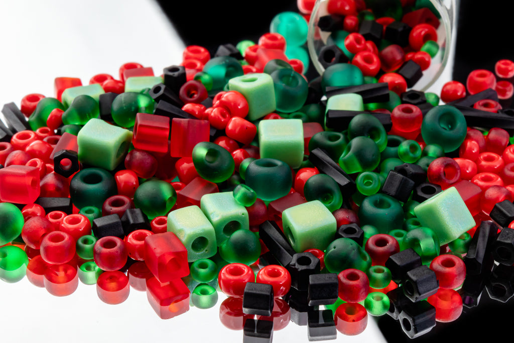 May include seed beads, bugles, cubes, hex beads and magatama drops.