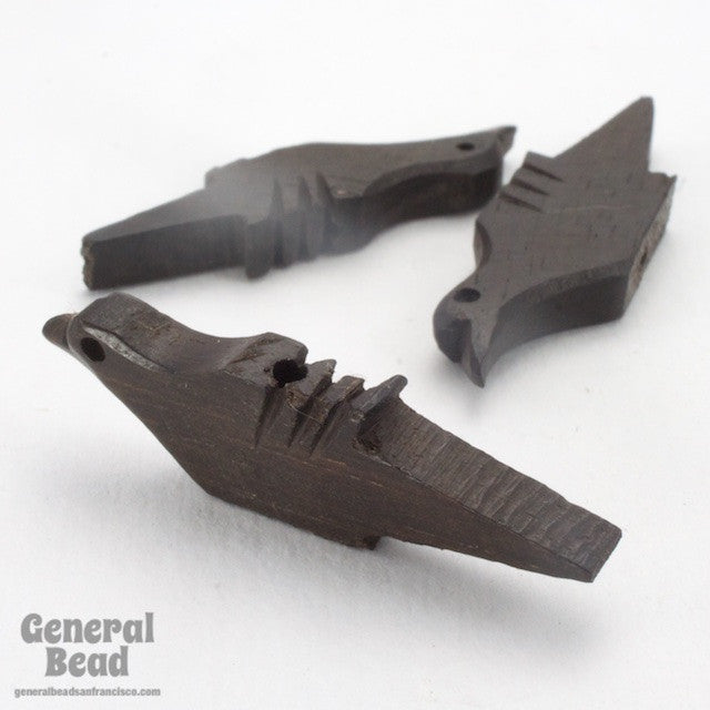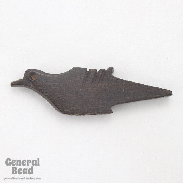 12mm x 33mm carved wood bead in the shape of a long tailed bird.