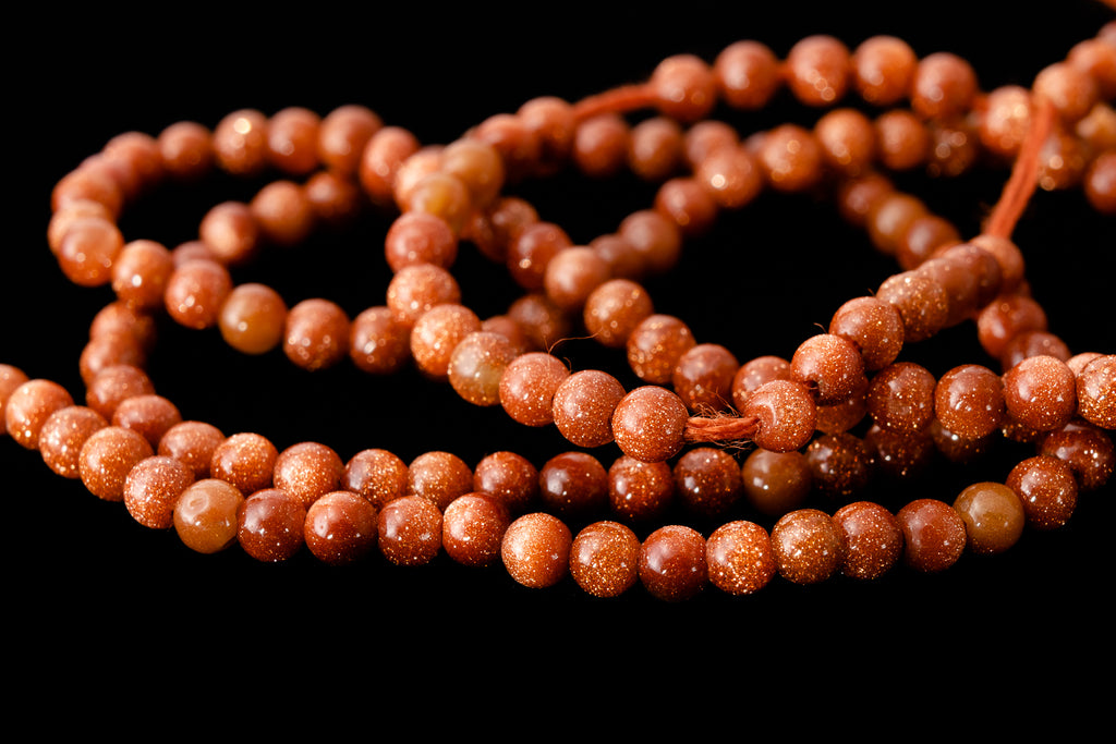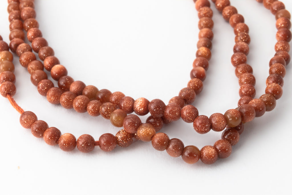 16" strand of 2mm round Goldstone beads. Standard drilled hole through center.