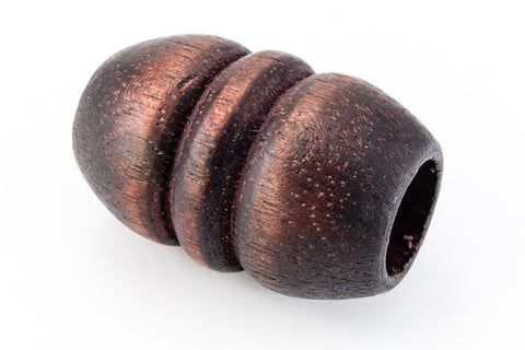 19mm x 30mm brown barrel bead with ridges and 10mm hole.