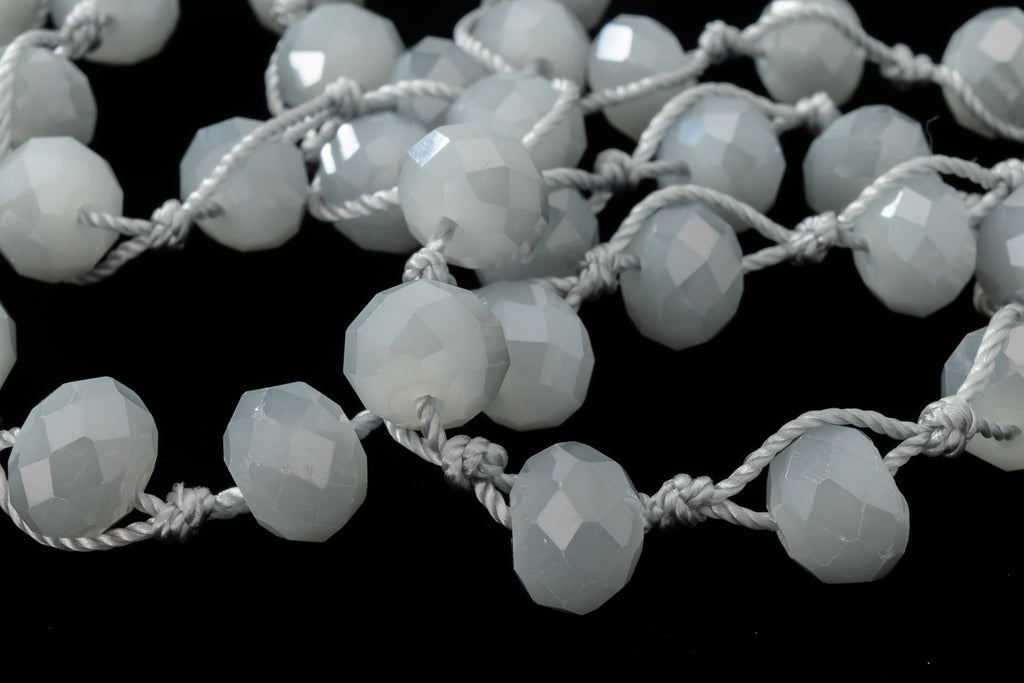 36" Light Milky Gray 6mm x 8mm Faceted Rondelle Knotted Necklace