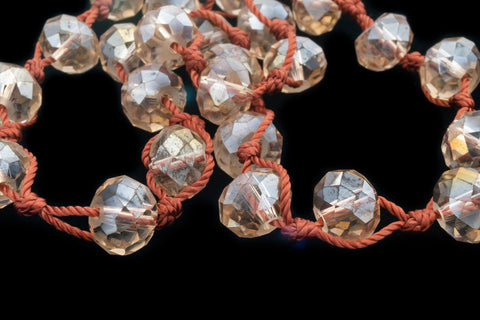 36 inch long knotted cord necklace with 6mm x 8mm faceted rondelle beads.