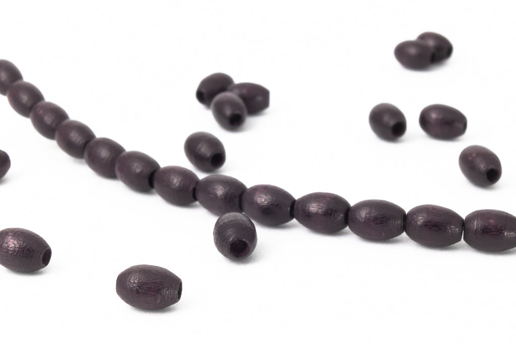 4mm x 6mm dark brown dyed oval wood bead with 1mm hole.
