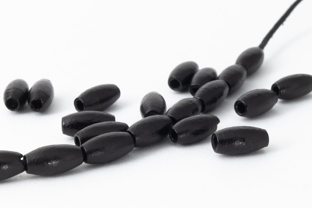 4mm x 8mm black dyed oval wood bead with 1mm hole.