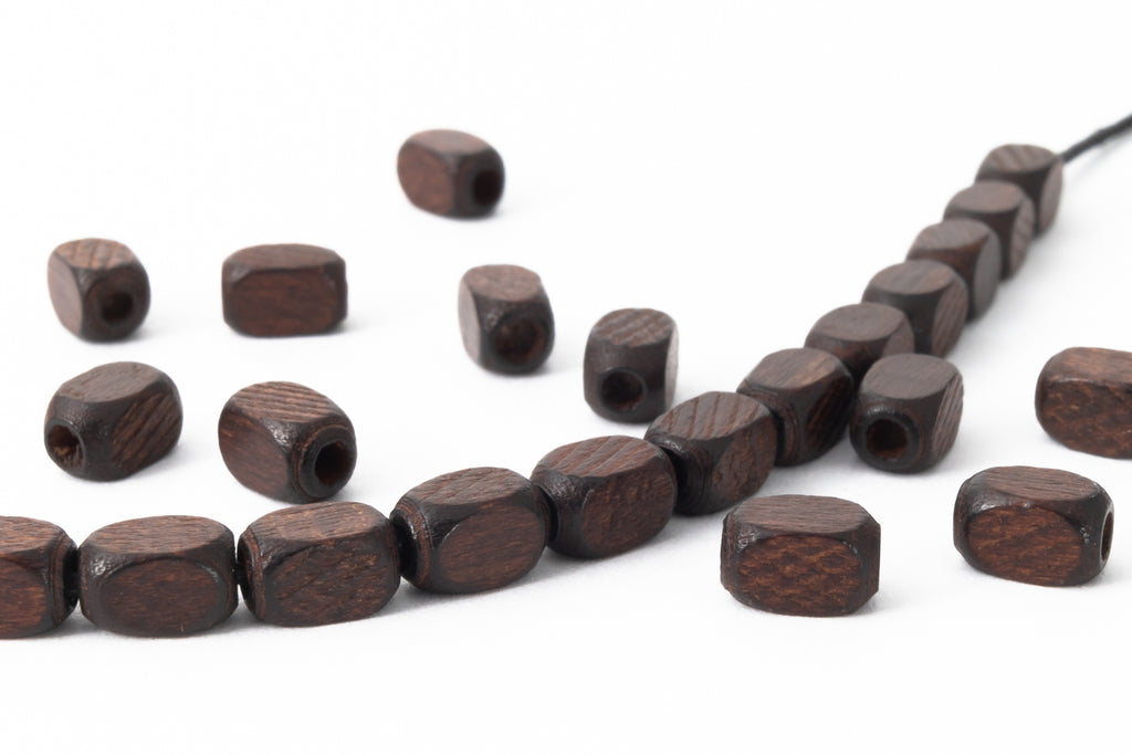 5mm x 6mm medium brown dyed wood four sided barrel.