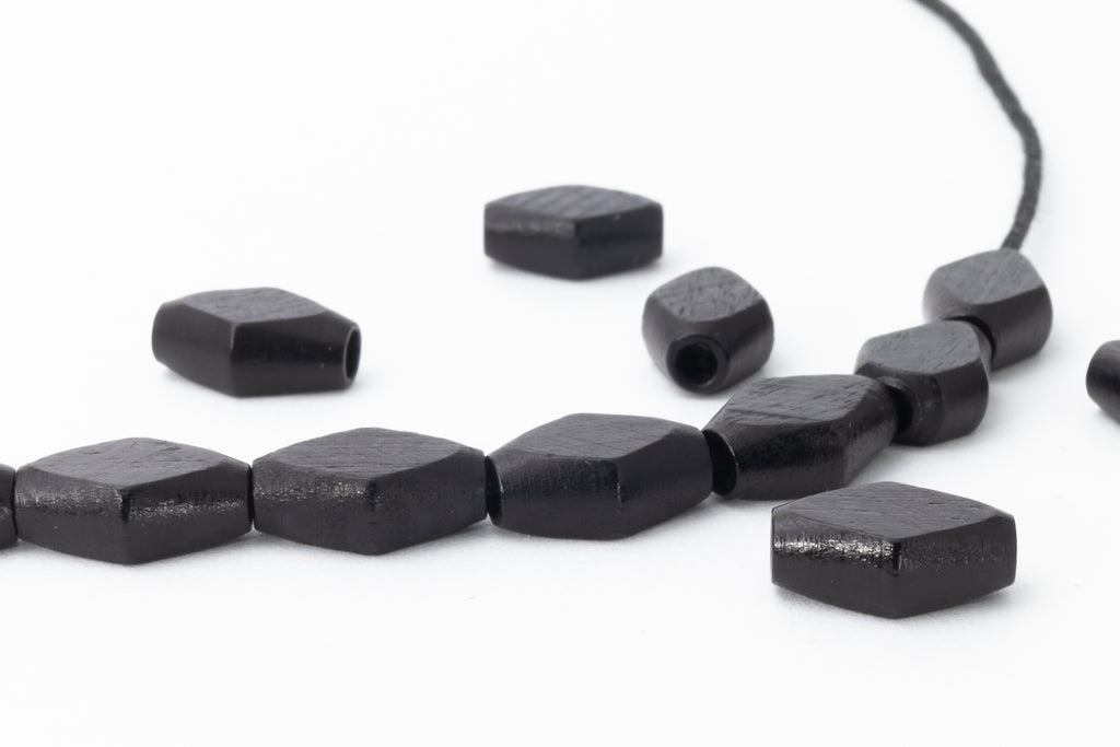 6mm x 9mm black dyed flat diamond wood bead with 1mm hole.