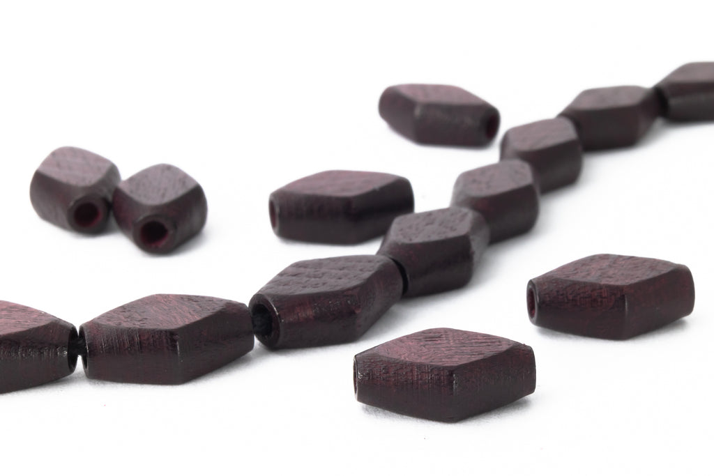 8mm x 12mm dark brown dyed flat diamond wood bead with 1mm hole.