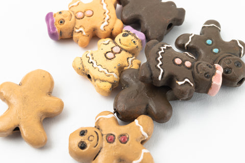 12mm Brown/Pink Ceramic Gingerbread Person Bead #AAU105D