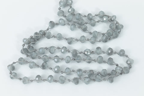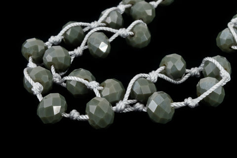 36" Light Milky Gray 6mm x 8mm Faceted Rondelle Knotted Necklace